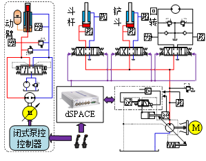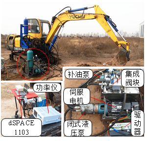 试验平台主要由伺服电机、电机驱动器、闭式液压泵、集成阀块、补油系统、dSPACE、功率仪等构成。闭式泵控系统采