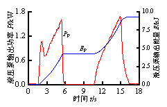 对动臂下降—举升一个工作循环进行试验测试,所得到的工作特性曲线如图 5 12所示